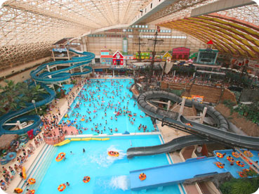 中でもウォーターパークは全天候型の大型ドームで28℃と暖かく、巨大なプールや周りに生えている椰子などもあってムード満点のテーマパークになっています。
